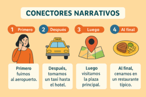 Para contar histórias ou relatar acontecimentos, é fundamental organizar a ordem dos eventos. No espanhol, usamos conectores narrativos para dar sequência e tornar o discurso mais claro.