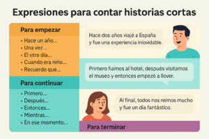 Contar histórias curtas é uma habilidade importante no DELE B1, tanto na parte oral quanto escrita. Com as expressões certas, você pode iniciar, desenvolver e concluir um relato de forma natural.