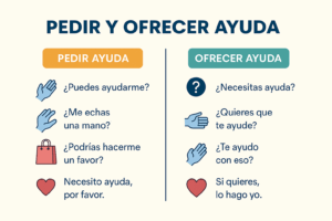 Objetivo: Utilizar expressões práticas para pedir e oferecer ajuda em espanhol, úteis em interações cotidianas e situações comunicativas da prova DELE.