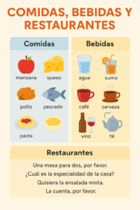 Comer e beber são atividades centrais da vida cotidiana e aparecem com frequência em exames do DELE. Saber como pedir comida e bebida em um restaurante é essencial para viagens e interações sociais.